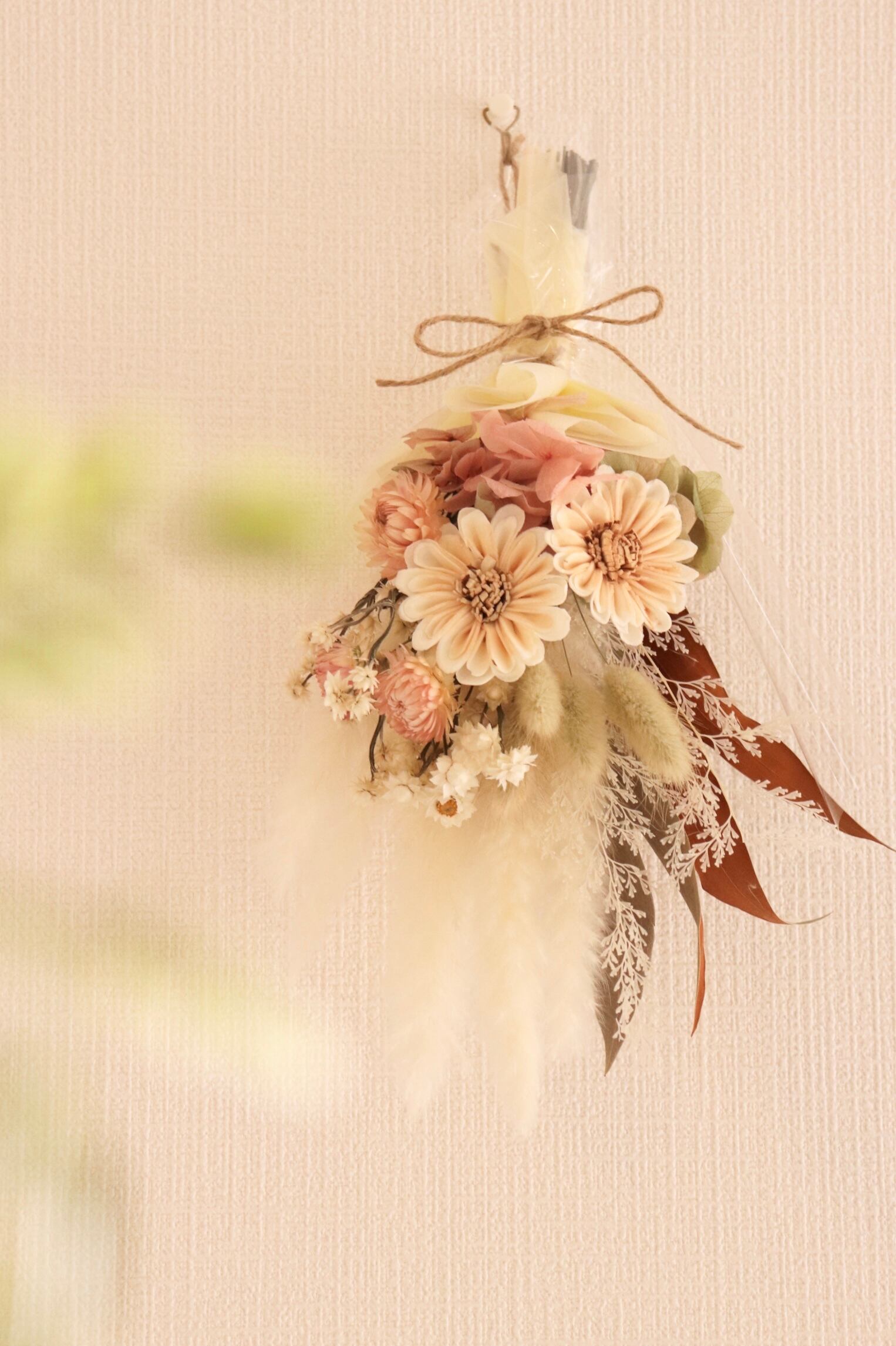 ブーケはスワッグとして壁に飾ることもでき、